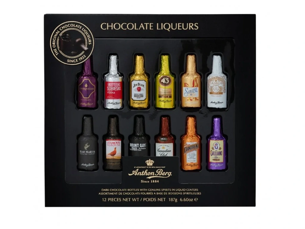 Anthon Berg bonboniéra likérových lahviček je dokonalým dárkem pro všechny, kteří si rádi dopřávají něco výjimečného. Spojení sladké čokolády a silného alkoholu je zárukou nezapomenutelného chuťového zážitku.