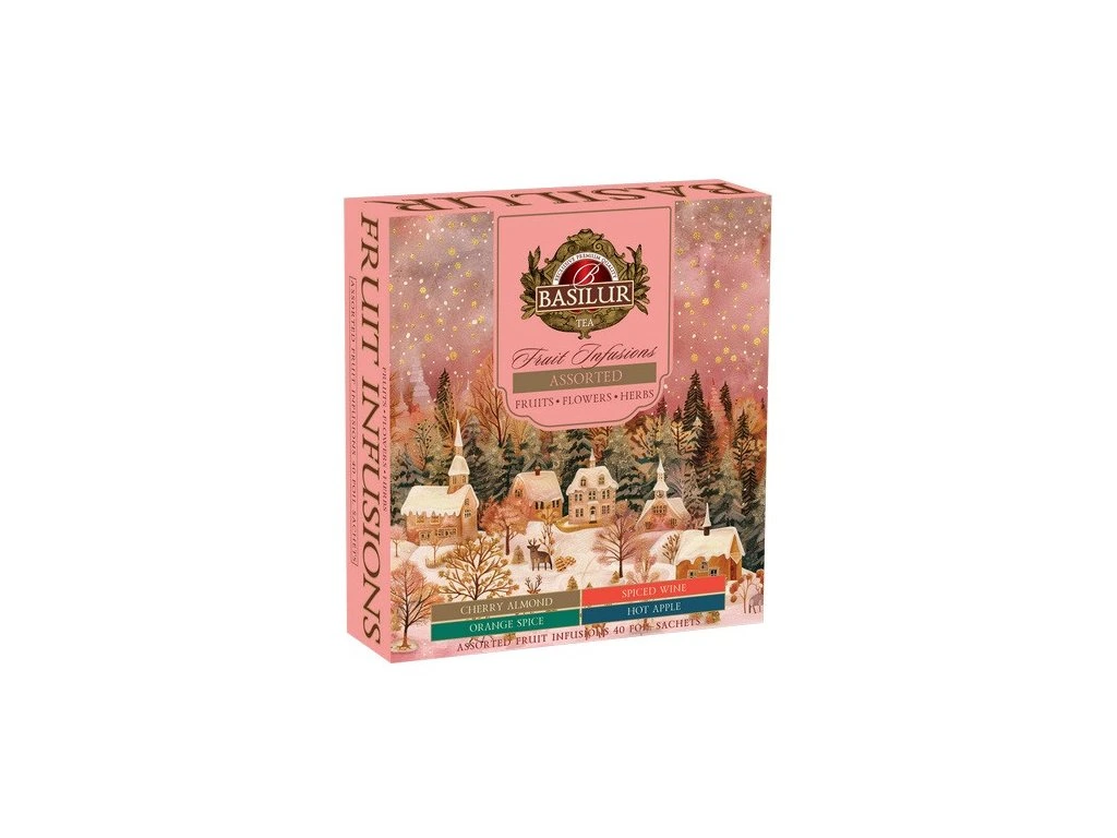Vánoční kolekce Basilur Christmas Fruit přináší čtyři druhy čaje. Najdete v ní čaj s příchutí svařeného vína, pomeranče se skořicí, horkého jablka a ovocný čaj třešeň s mandlí. Tato čajová kolekce bude krásným dárkem pro ženu, dívku, milovníka čajů. Hodí se také do dárkového koše či balíčku