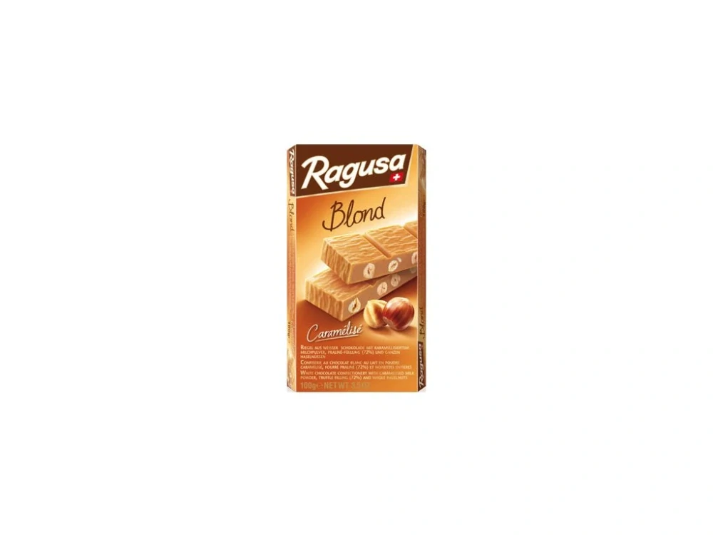 Tradiční recept z roku 1942 doplňuje nyní Camille Bloch řadu Ragusy o novou Ragusa Blond. "Blonde" je zcela nová kategorie čokolády.Jasně ji odlišuje od bílé čokolády, chutná jemně sladce. Název je odvozen od zlatožluté barvy, kterou zvýrazňuje karamel a poskytuje společně s pralinkovou náplní a ořechy, opravdový kulinářský zážitek. Ragusa čokolády jsou vyhledávány milovníky čokolády ve Švýcarsku i v zahraničí.