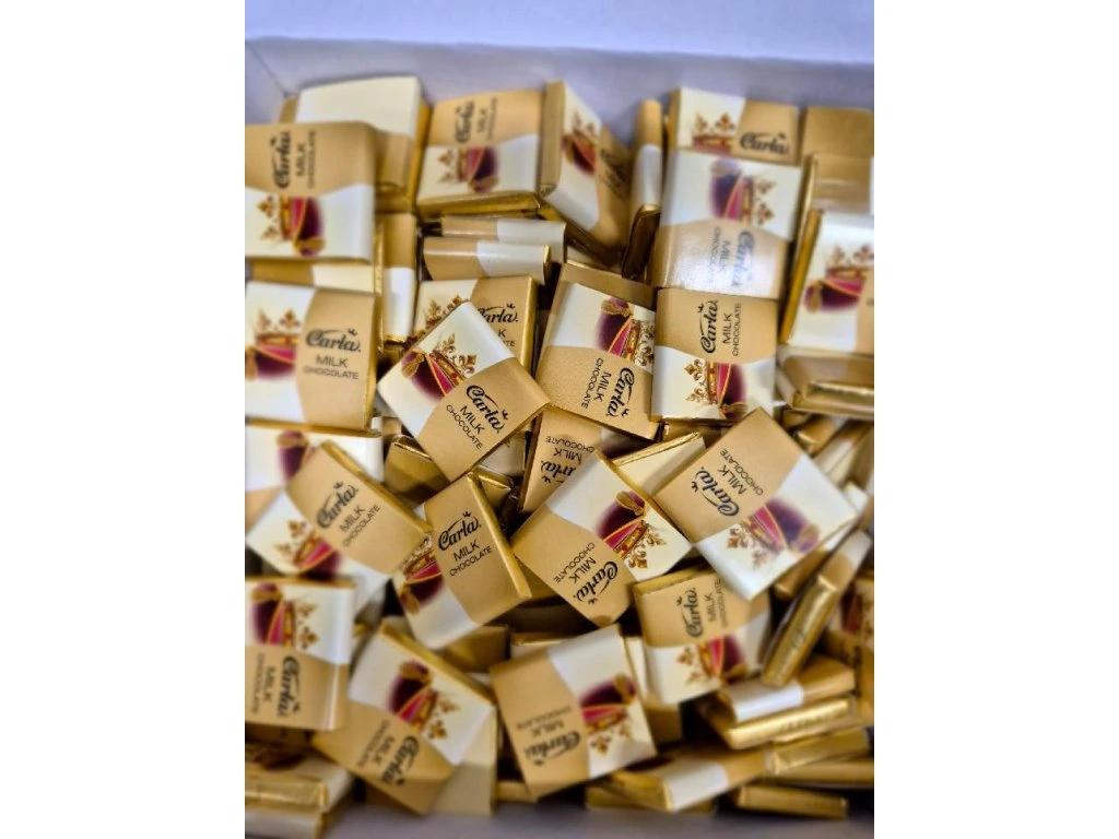 Carla mléčné neapolitánky představují dokonalou kombinaci jemné mléčné čokolády a elegantního balení. Každé balení obsahuje 1 kg neapolitánek, což odpovídá přibližně 200 jednotlivě baleným čokoládovým kouskům. Každá neapolitánka je pečlivě zabalena do bílosmetanového obalu s minimalistickým designem a textem "Carla Milk Chocolate". Tyto neapolitánky jsou ideální jako drobné občerstvení ke kávě, čaji nebo jako malá pozornost pro hosty. Vynikající kvalita čokolády od značky Carla potěší každého milovníka sladkostí. Produkt je vhodný jak pro osobní potřebu, tak pro použití v gastronomii, hotelnictví či kancelářích.