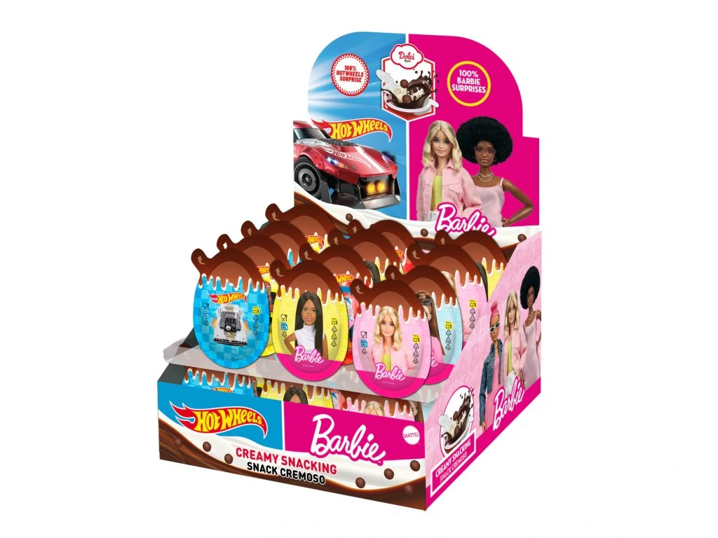 Dolci Surprise je zábavná sladká pochoutka pro děti, která spojuje lahodný krémový snack s překvapením uvnitř. Každé balení ukrývá sběratelskou figurku nebo autíčko inspirované světem Barbie nebo Hot Wheels. Děti si tak mohou vychutnat sladkou dobrotu a zároveň si rozšířit svou sbírku hraček.