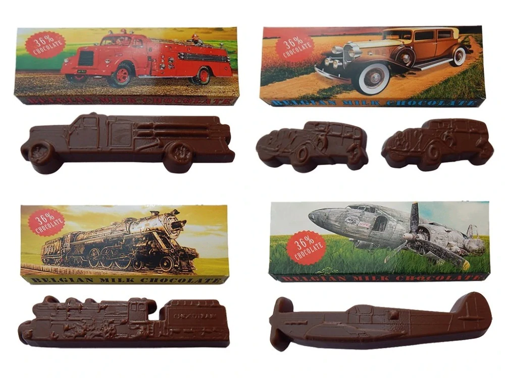 Variace mléčných čokoládek v obalu s dopravními prostředky. Druhy mícháme dle skladové dostupnosti