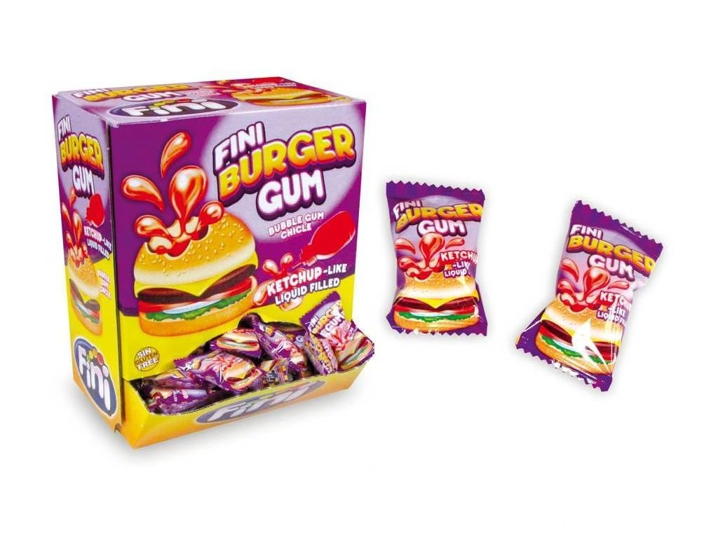 Jednotlivě balené žvýkačky ve tvaru hamburgů. Žvýkačky se hodí jako menší odměna při pořádání soutěží i akcí pro děti.