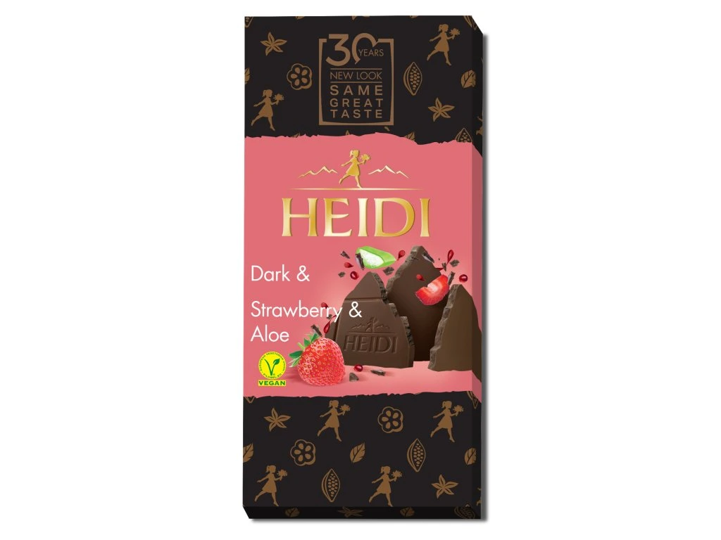 Heidi Dark Strawberry Aloe Vera Hořká čokoláda s jahodami a aloe vera 80gSkladem 20 ks108 Kč/ ks