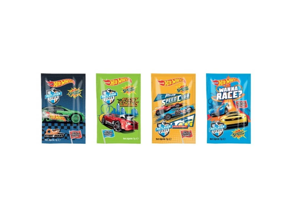 Oblíbený práskací cukr s výraznou jahodovou příchutí v atraktivním balení s motivy závodních aut Hot Wheels potěší malé i velké fanoušky sladkostí a rychlých kol. Každý sáček obsahuje 7 gramů zábavně praskajícího cukru, který při kontaktu s jazykem vytváří jedinečný efekt šumění a praskání – zážitek, který nadchne nejen děti. Display obsahuje 40 jednotlivě balených sáčků s různými motivy Hot Wheels aut, ideální pro prodejny, dětské oslavy nebo jako originální sladkost do dárkových balíčků. Skvělá kombinace zábavy, výrazné chuti a poutavého designu.