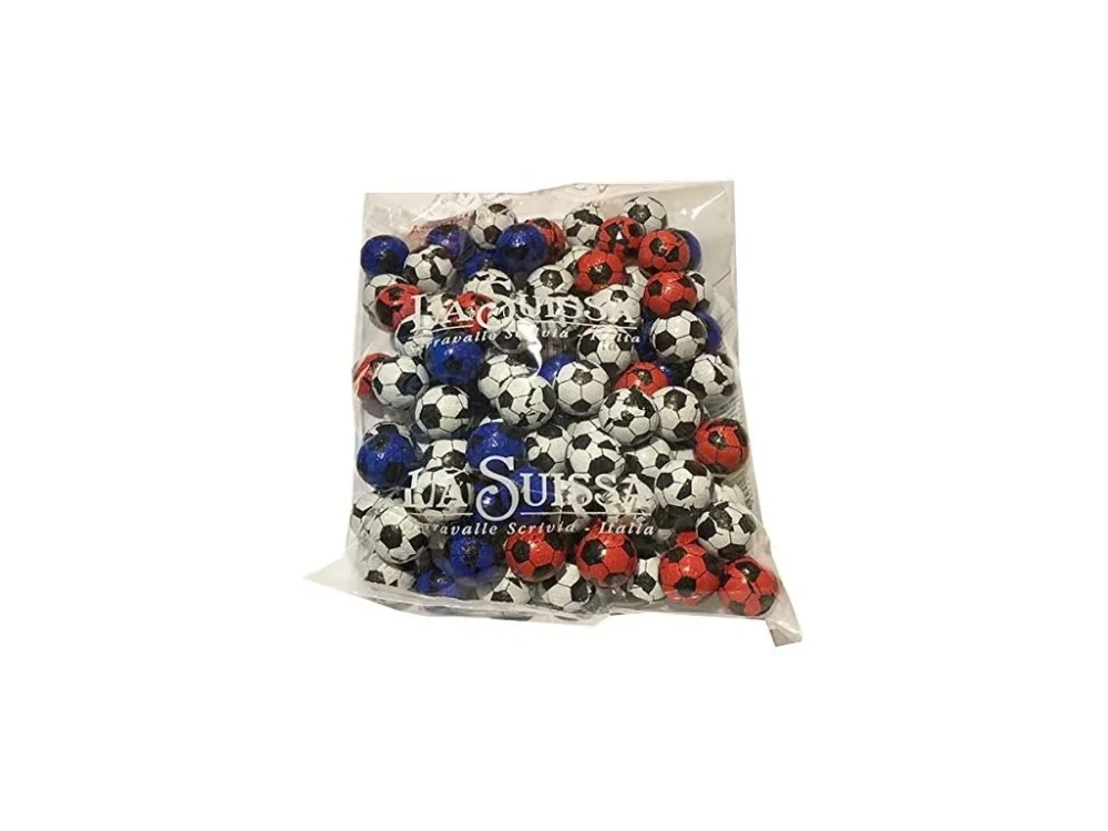 Sladká radost pro všechny fotbalové fanoušky! La Suissa Čokoládové fotbalové míče jsou lahodné mléčné čokoládové kuličky plněné jemným mléčným krémem. Každý míček je zabalen do fólie s fotbalovým motivem v bílé, červené nebo modré barvě. Velké 1kg balení obsahuje přibližně 100 kusů, což je ideální na dětské oslavy, sportovní akce nebo jako sladká odměna pro malé i velké hráče. Dopřejte si skvělou kombinaci čokolády a krémové náplně! ⚽🍫✨