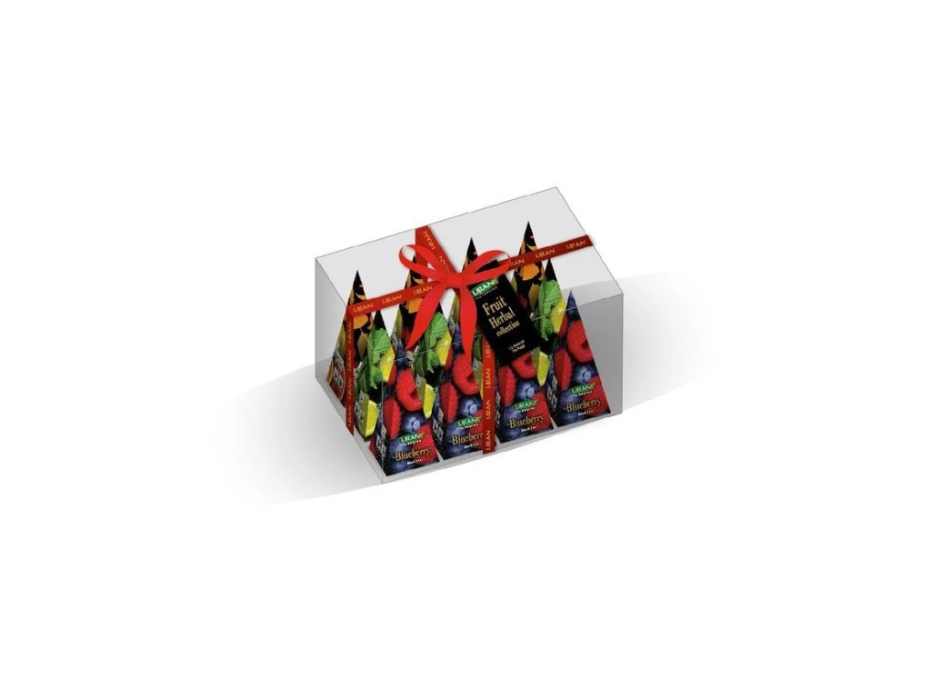 Dárkové balení pyramidových čajů Liran Fruit Herbal obsahuje černé a zelené čaje. Čaje jsou ochucené ovocem a bylinkami. V balení najdete 12 kusů pyramidek.