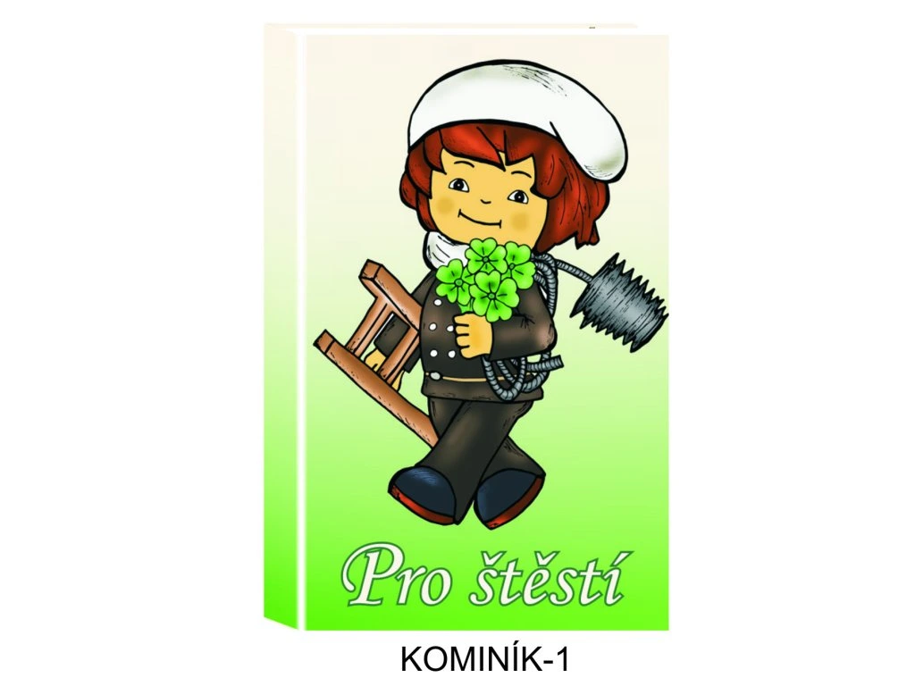milý motiv kominíka s přáním „Pro štěstí“