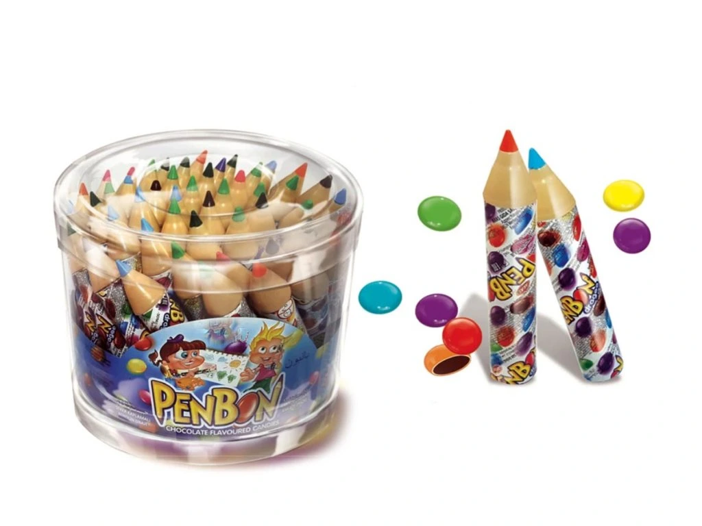 Originální sladkost, která zaujme na první pohled! Penbon jsou čokoládové bonbony ukryté v obalu ve tvaru pastelky. Zábavné balení a barevné dražé z nich dělají ideální pochoutku pro děti i skvělý doplněk do dárkových balíčků.