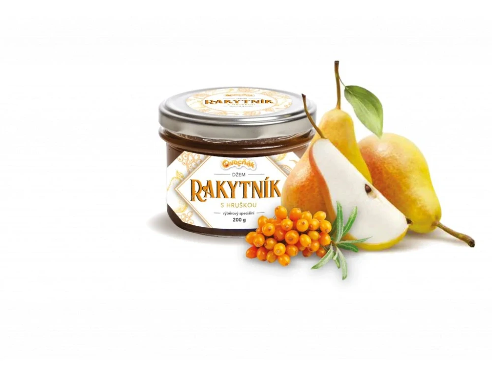ílem je nabídnout poctivé džemy s netradiční kombinací ovoce, kde hlavní ovocnou složkou je rakytník. V tomto džemu jsme ho zkombinovali s hruškou, která vyrovnává kyselost rakytníku.