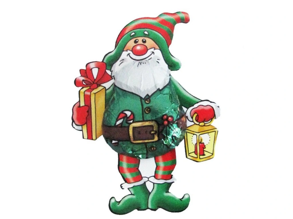 Vánoční skřítek z jemné mléčné čokolády nesoucí dárky všem hodným dětem budde sladkou odměnou. Figurka vánočního skřítka se hodí do mikulášského balíčku