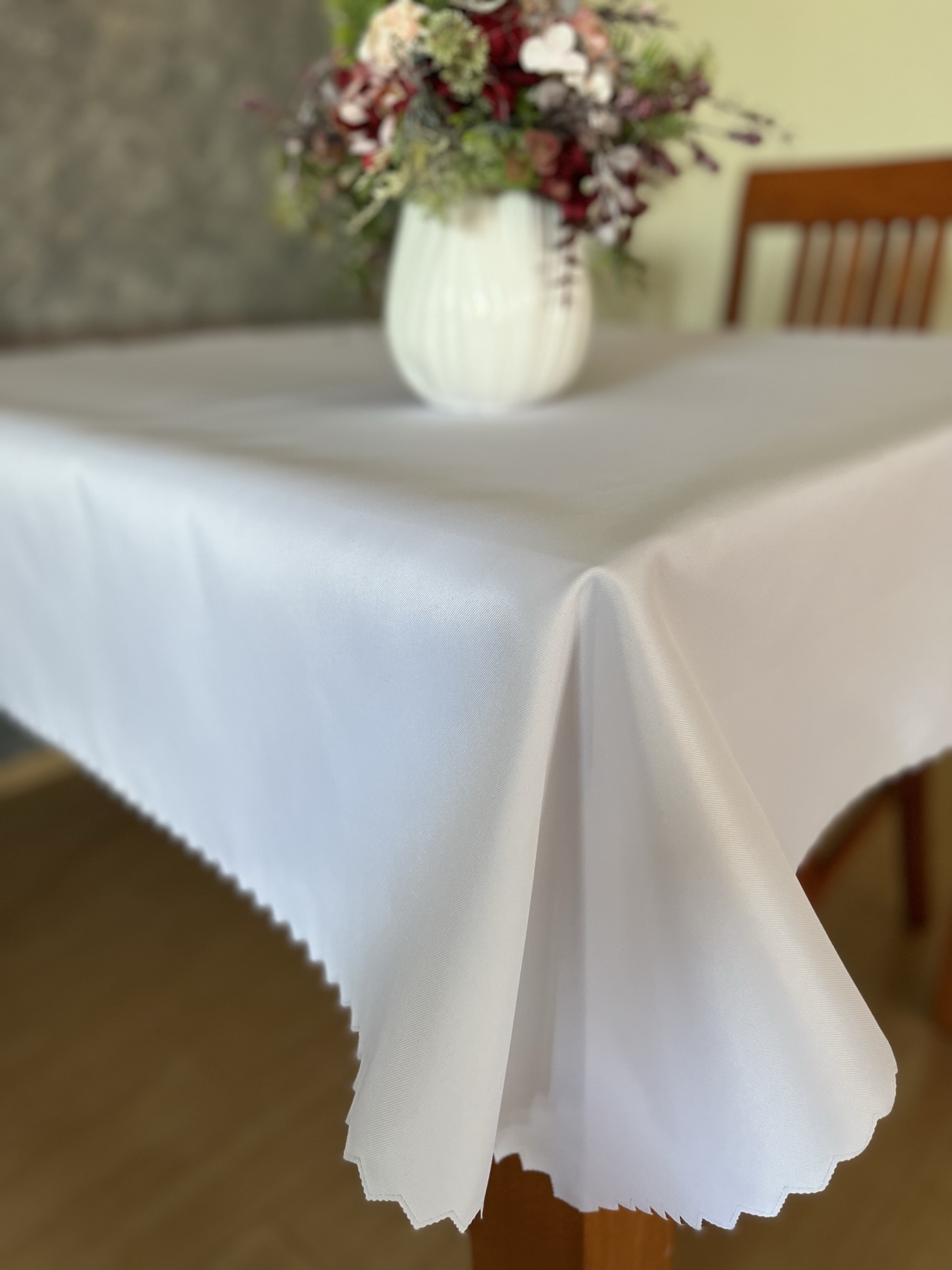 Teflonové ubrusy naši výroby jsou vysoce kvalitní díky své gramáži 220g/m2. Tato vysoká hustota teflonového ubrusu zaručí, že ubrusy nekloužou po stole a působí vysoce kvalitním dojmem. Díky voděodpudivé úpravě ubrusy nevsakují tekutiny. V případě polití, stačí ubrus setřít utěrkou nebo ubrouskem. Tyto teflonové ubrusy s vodoodpudivou úpravou jsou velmi snadné na údržbu. Vzhledem k tomu, že jsme výrobci dokážeme Vám vyrobit ubrus přímo na míru. Praní na 40°C